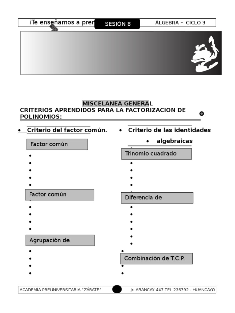 CRITERIOS APRENDIDOS PARA LA FACTORIZACION DE