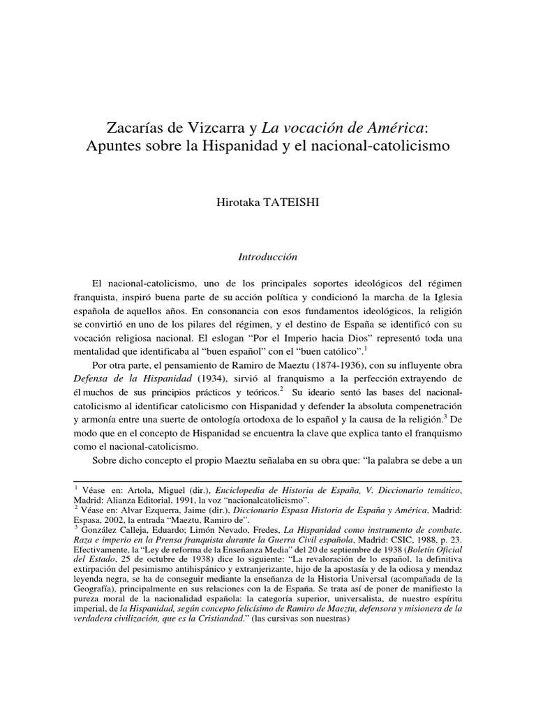 en profundidad de los conceptos de hispanidad y nacional-catolicismo : (1) principales