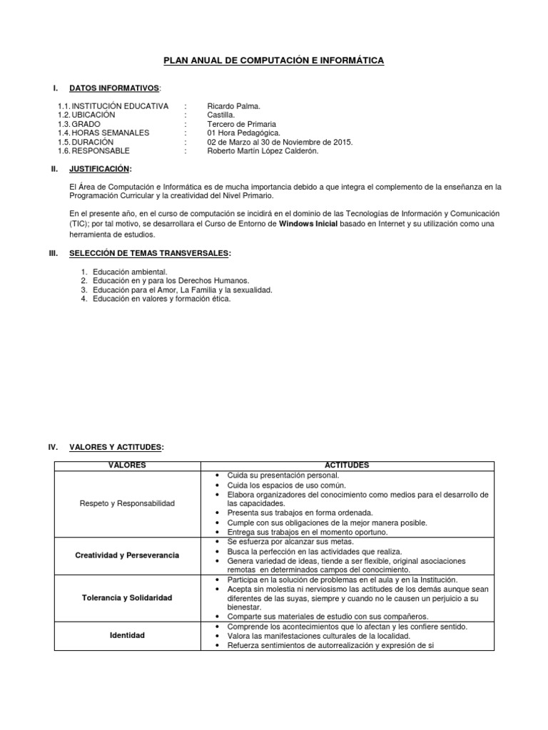 El rea de Computacin e Informtica es de mucha importancia debido a que integra el complemento de la enseanza en la