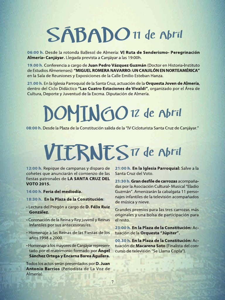 Programación de las Fiestas en honor a su Patrona, la Santa Cruz del Voto de Canjáyar.