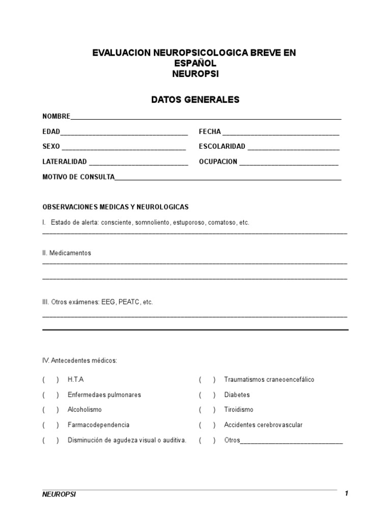 EVALUACION NEUROPSICOLOGICA BREVE EN