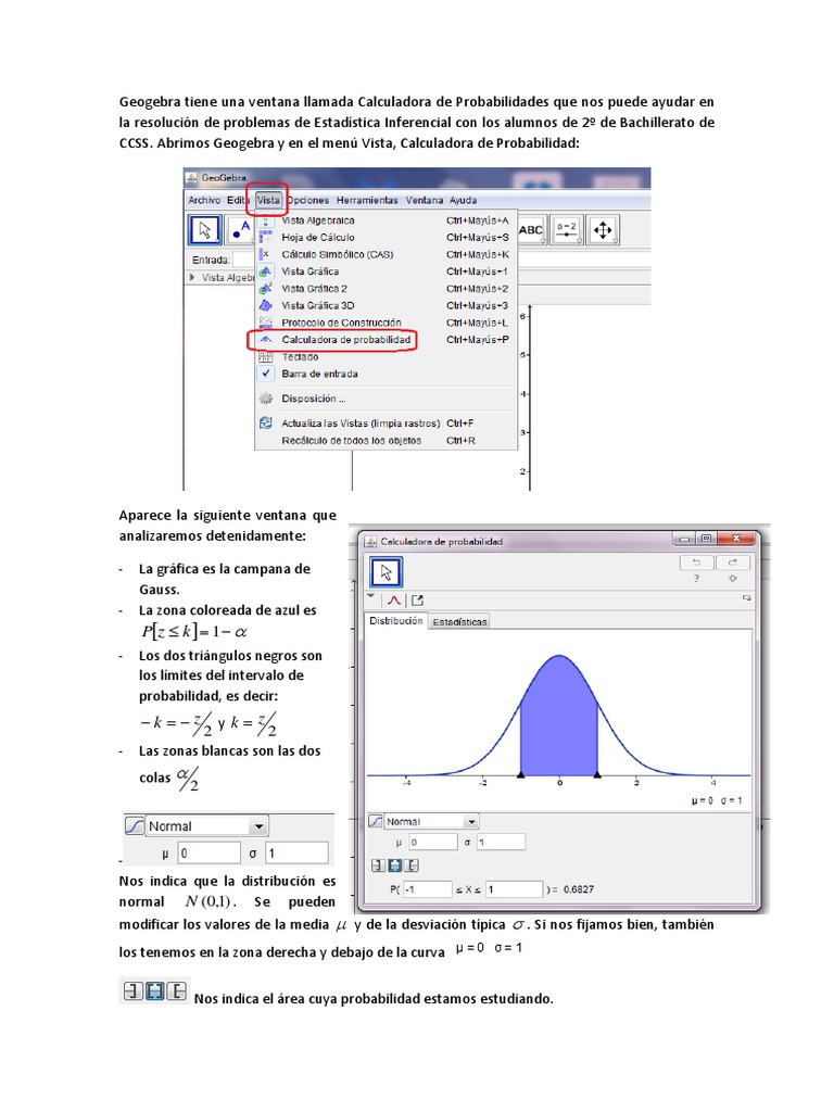 Geogebra tiene una ventana llamada Calculadora de Probabilidades que nos puede ayudar en