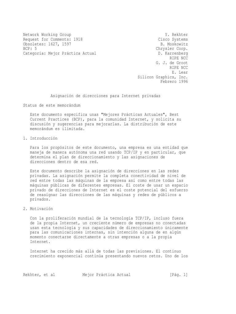 el uso de direccionamiento privado requiere que una organizacin