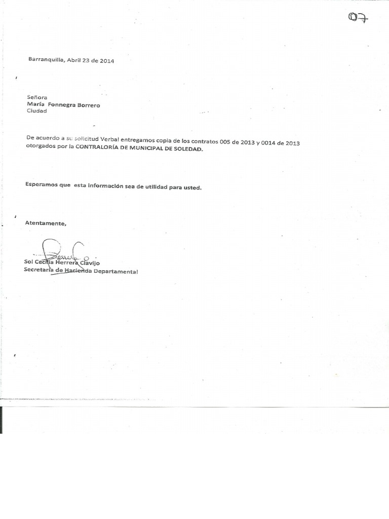 Soledad, a los diecisiete (17) dias del mes de Abril de 2013.