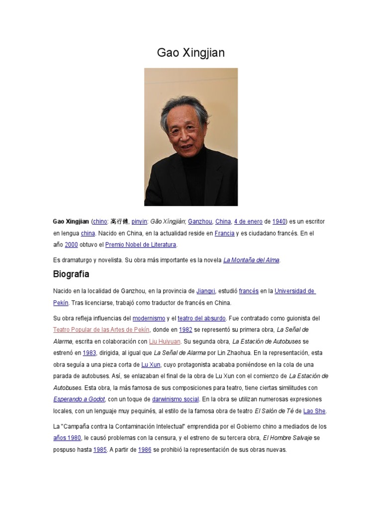 ao 2000 obtuvo el Premio Nobel de Literatura.