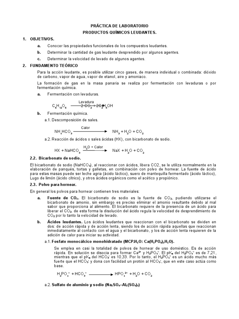cidos leudantes. Los cidos leudantes que reaccionan con el bicarbonato se dividen en