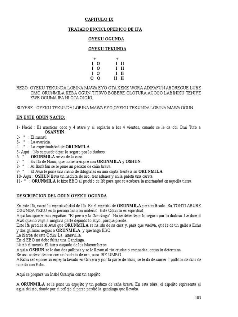 DESCRIPCION DEL ODUN OYEKU OGUNDA