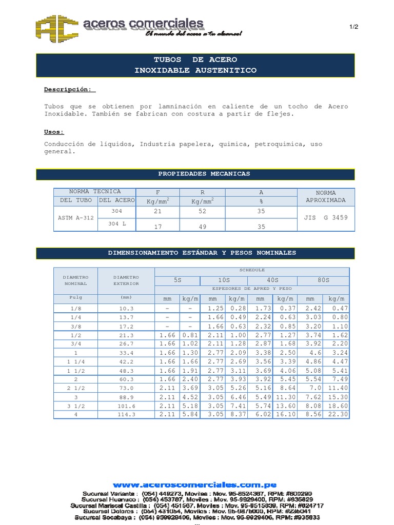 Ejemplo : Tubo Acero Inoxidable 304 de 4" SCH 40