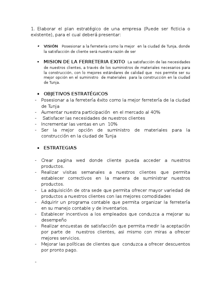 Elaborar el plan estratgico de una empresa (Puede ser ficticia o