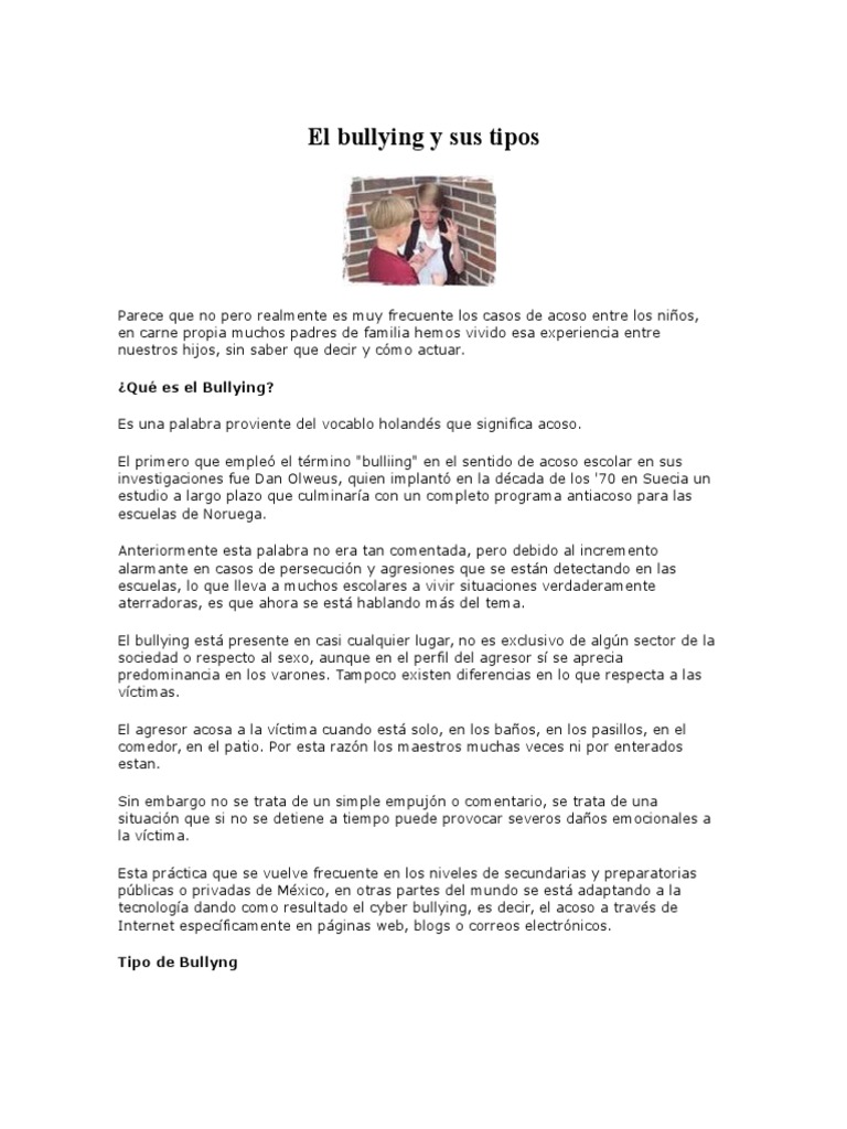 El bullying est presente en casi cualquier lugar, no es exclusivo de algn sector de la