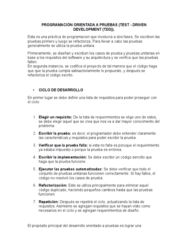pruebas primero y luego se refactoriza. Para llevar a cabo las pruebas