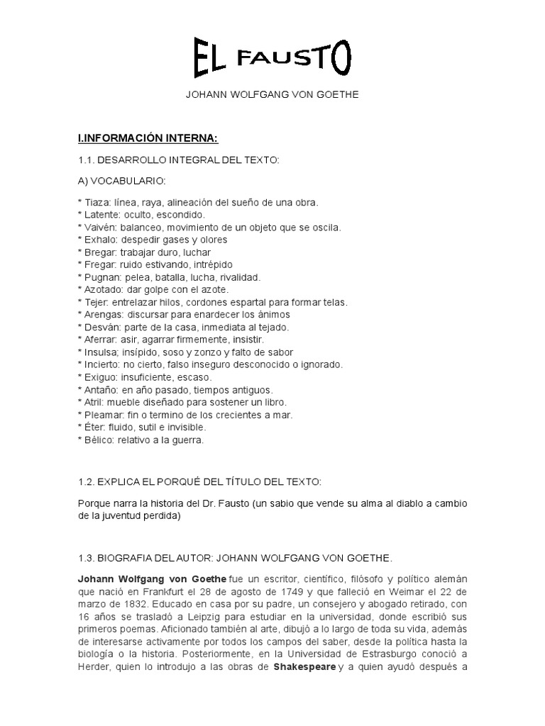 Fausto era un anciano que lo saba todo, menos el misterio de la vida, se hizo mago,