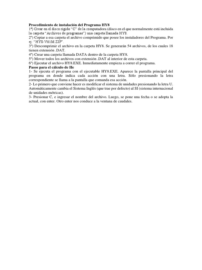 Procedimiento de instalacin del Programa HY8