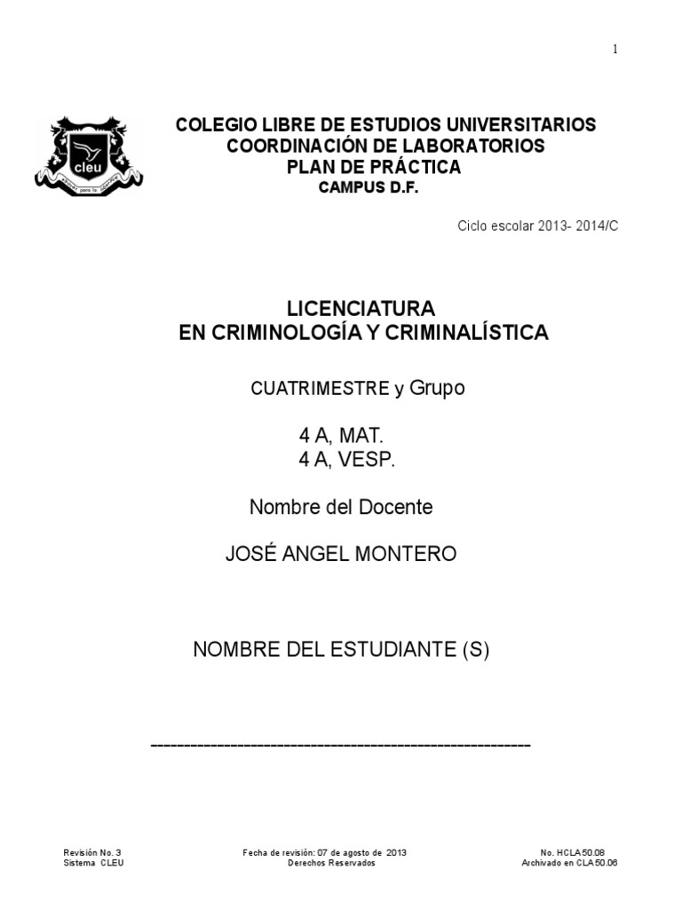 EL ALUMNO SE PRESENTARA A LABORATORIO A LA HORA ACORDADA, CON EL
