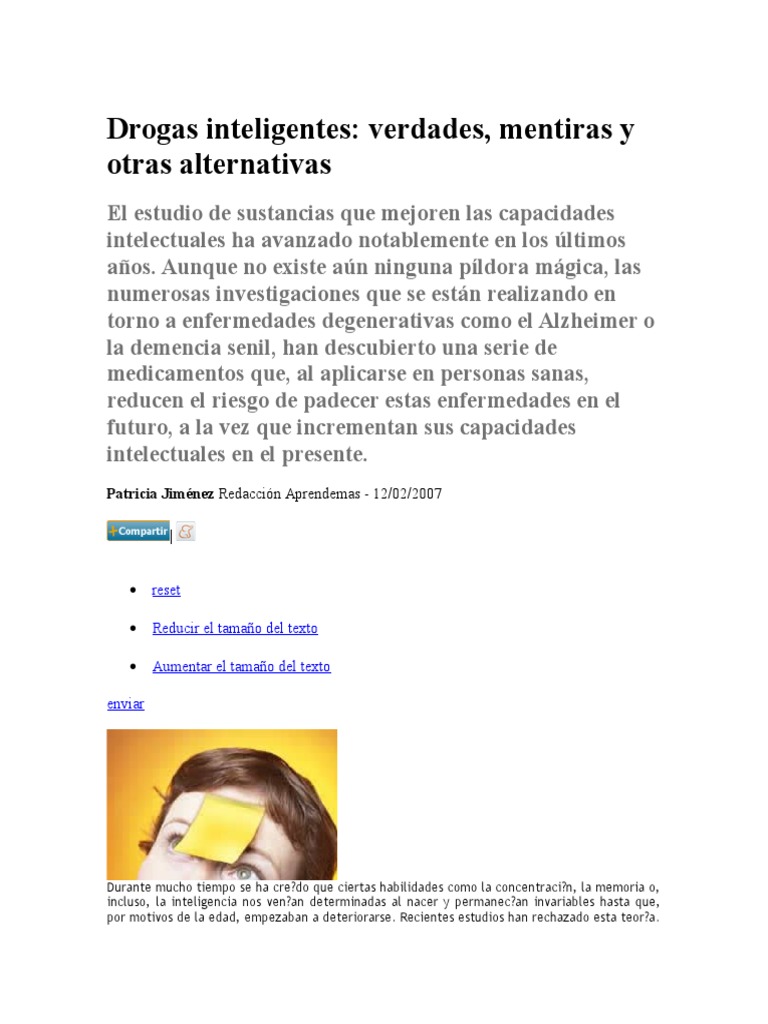 intelectual. Se vende sin receta m?dica y no se debe tomar de forma continuada.
