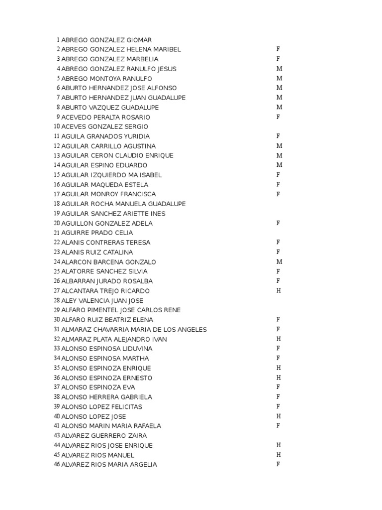 Lista de Nombres y Apellidos