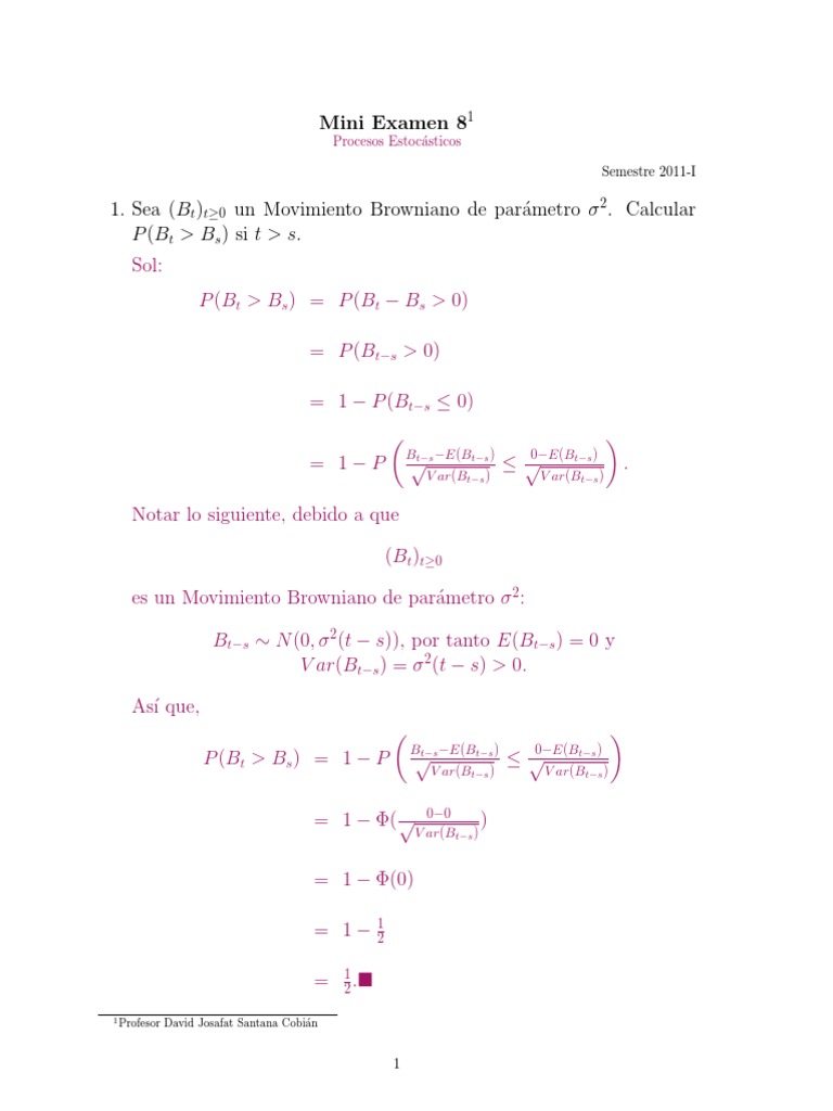 1. Sea (Bt )t0 un Movimiento Browniano de parametro 2 . Calcular