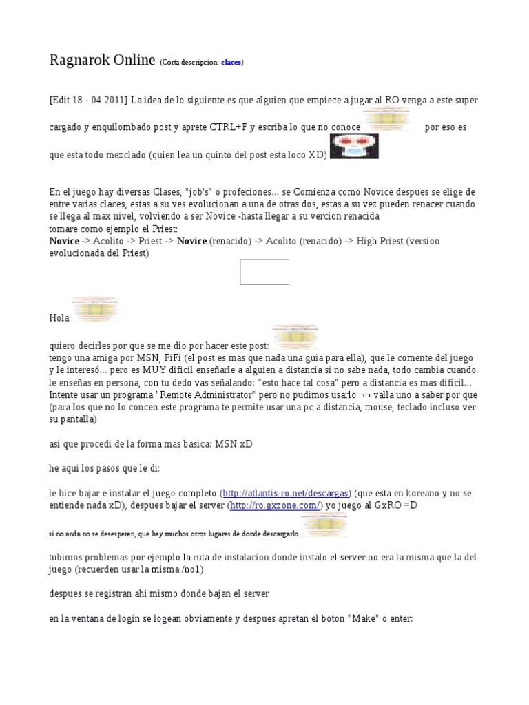 [Edit 18 - 04 2011] La idea de lo siguiente es que alguien que empiece a jugar al RO venga a este super