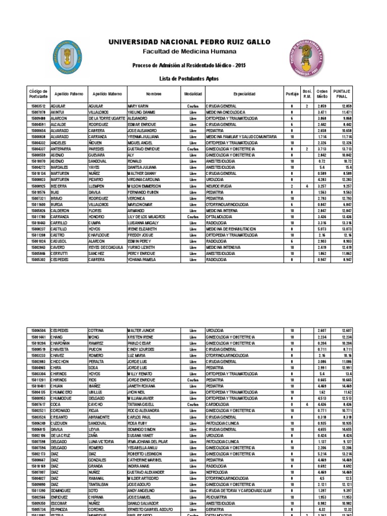 Proceso de Admisin al Residentado Mdico - 2015