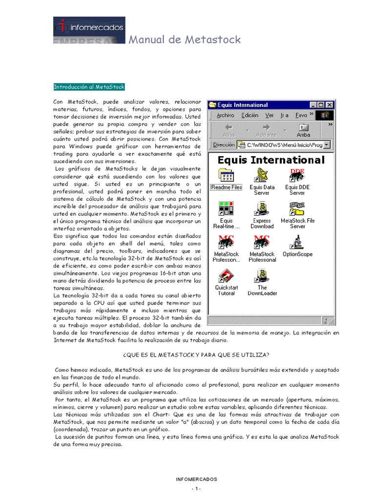 Por tanto, el MetaStock es un programa que utiliza las cotizaciones de un mercado (apertura, mximos,