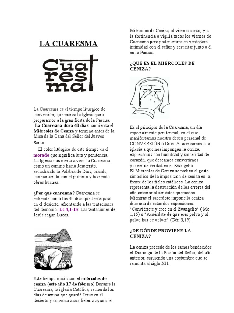 La Cuaresma dura 40 días; comienza el Es el principio de la Cuaresma; un día