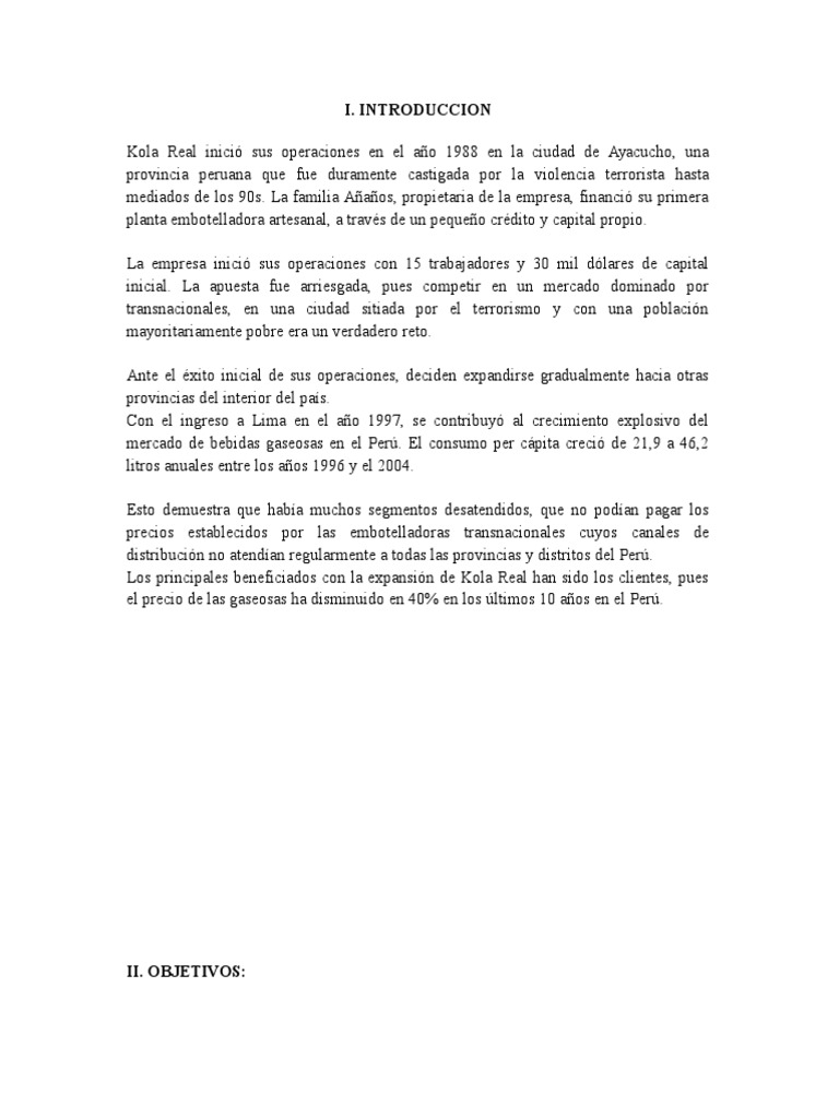Kola Real inici sus operaciones en el ao 1988 en la ciudad de Ayacucho, una