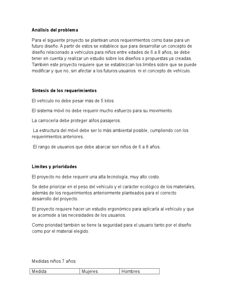 diseo relacionado a vehculos para nios entre edades de 6 a 8 aos, se debe