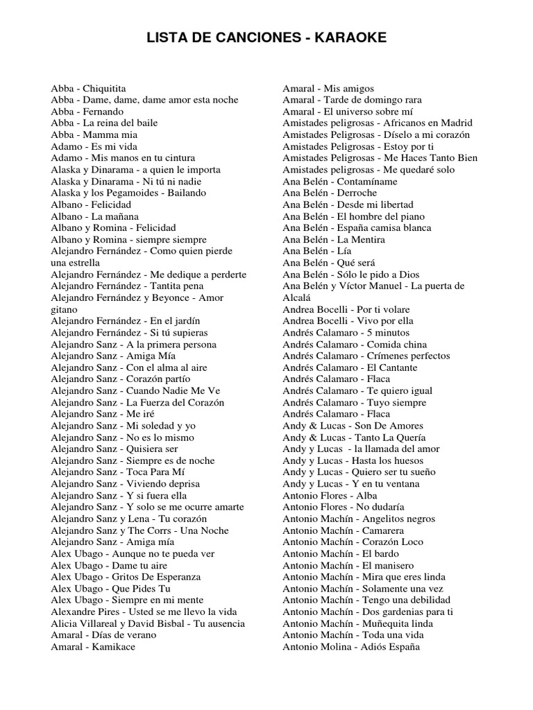 LISTA DE CANCIONES - KARAOKE