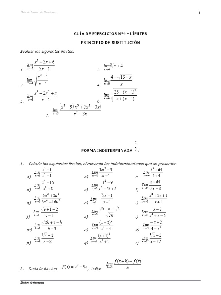 GUA DE EJERCICIOS N4 - LMITES