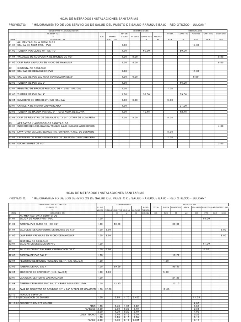 HOJA DE METRADOS INSTALACIONES SANITARIAS