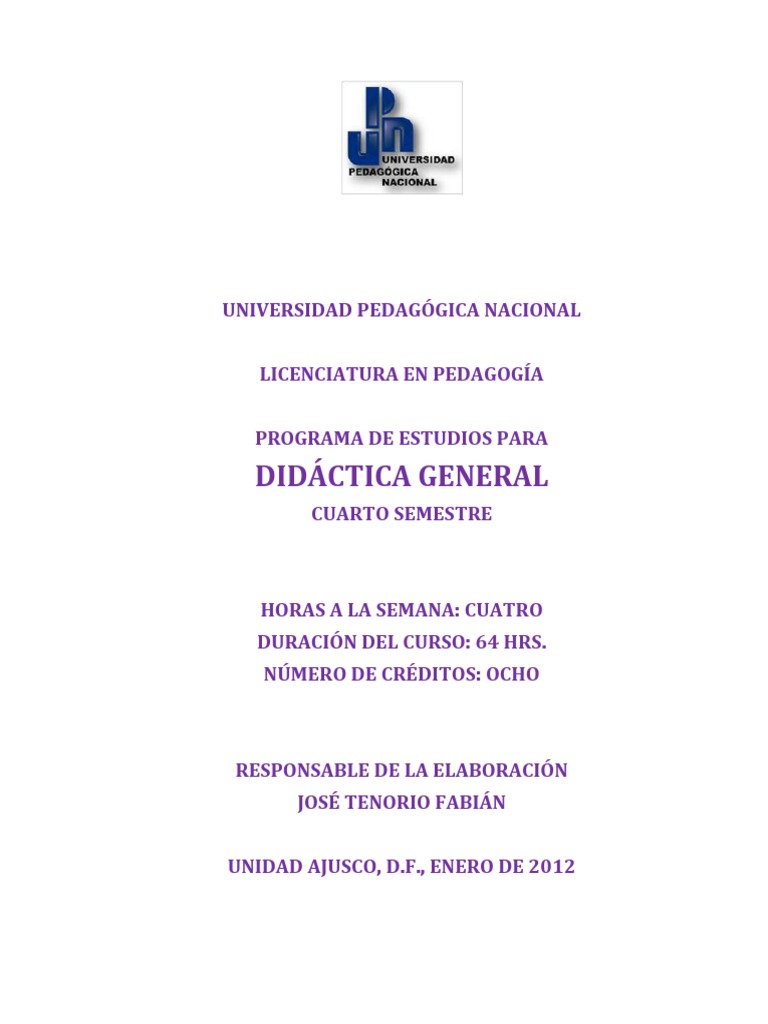 Nociones bsicas de la Didctica y realizar un ejercicio de observacin de prctica docente.Que permita a las y los alumnos, conocer las nociones conceptuales e histricas de la