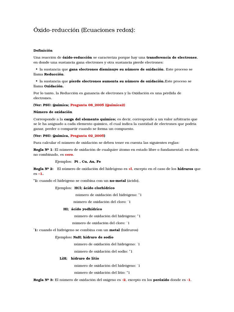 Para calcular el nmero de oxidacin se deben tener en cuenta las siguientes reglas: