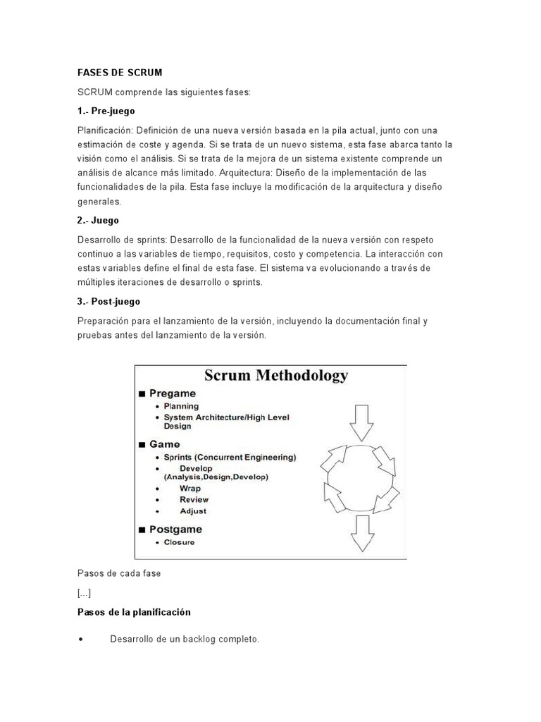 SCRUM comprende las siguientes fases: