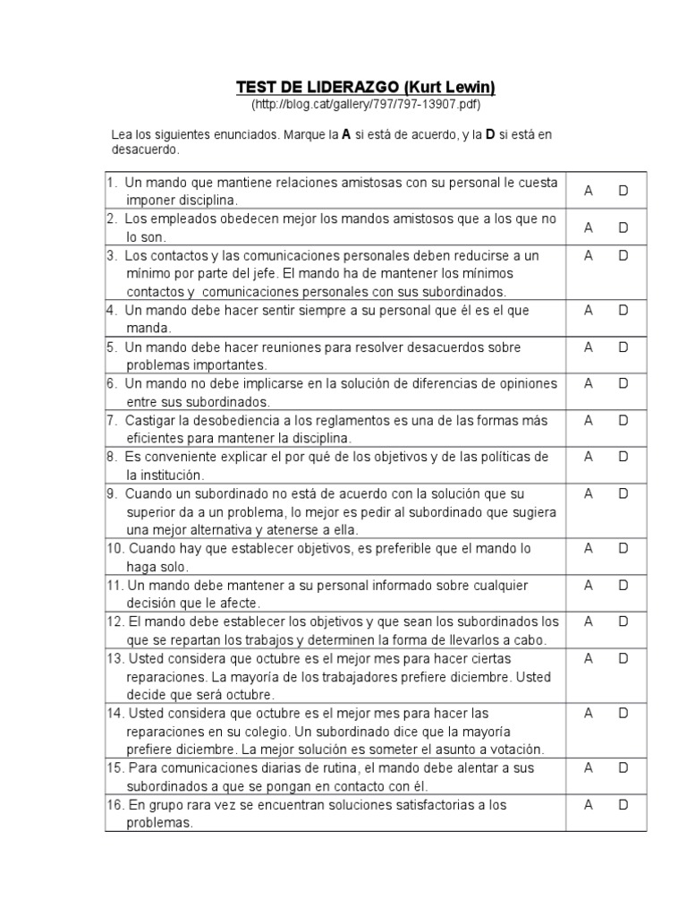 Lea los siguientes enunciados. Marque la A si est de acuerdo, y la D si est en