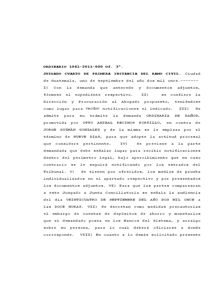 promovida por OTTO ANIBAL RECINOS PORTILLO, en contra de