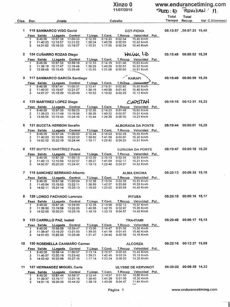 XV Raid de Rivadedeva Results 2015