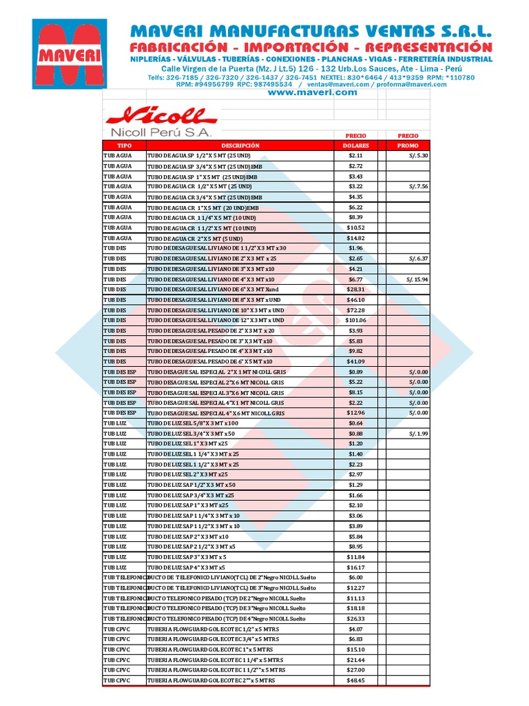 TUBO DE DESAGUE SAL LIVIANO DE 12" X 3 MT x UND