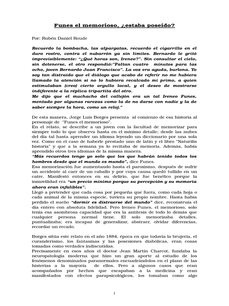 da entero con absoluta fidelidad. Pero Ireneo Funes, el memorioso, solo