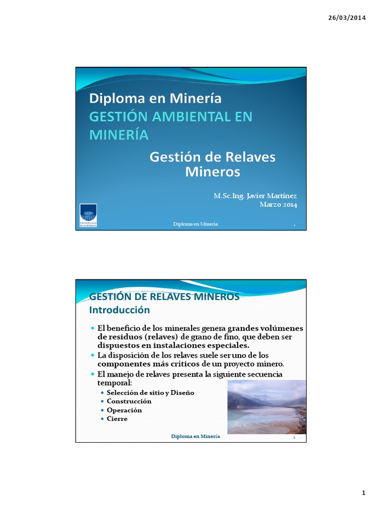 depsito de relaves, los cuales deberan ser verificados y actualizados