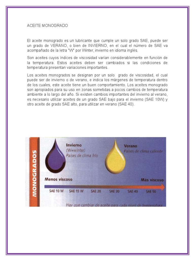 El aceite monogrado es un lubricante que cumple un solo grado SAE, puede ser