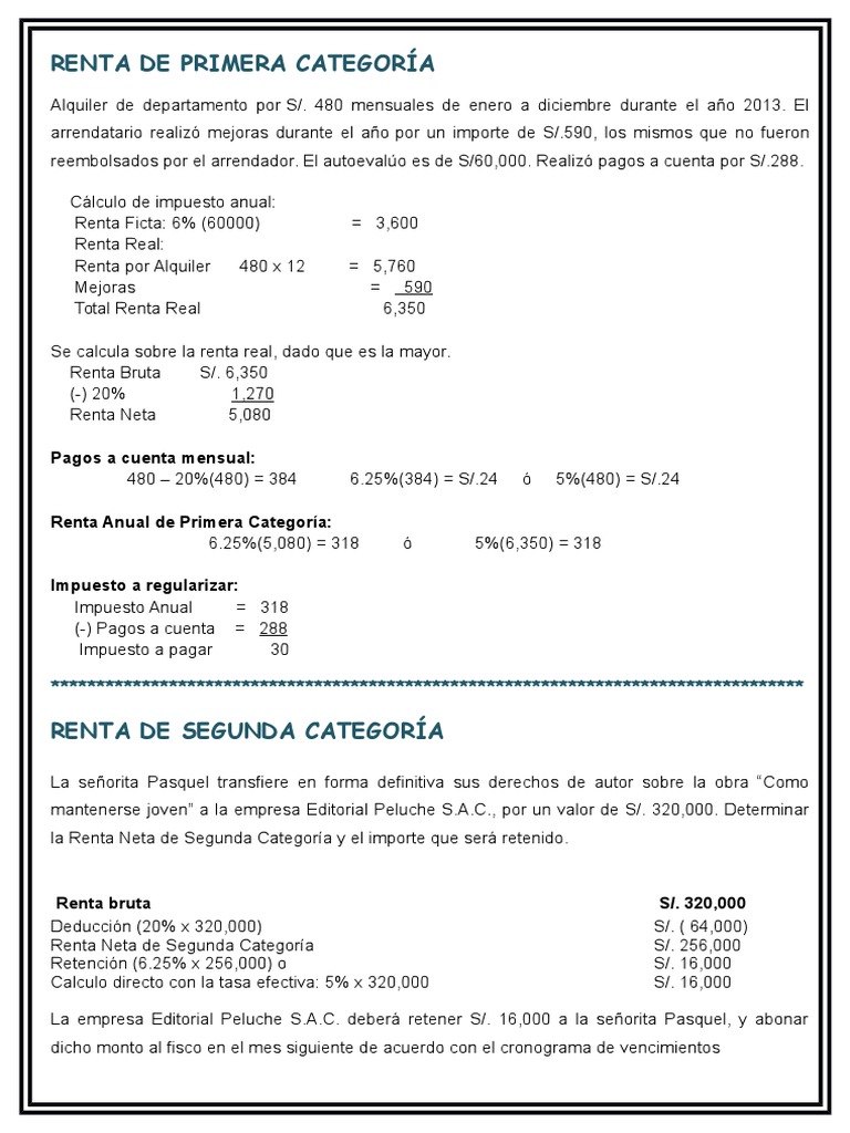 RENTA DE PRIMERA CATEGORA