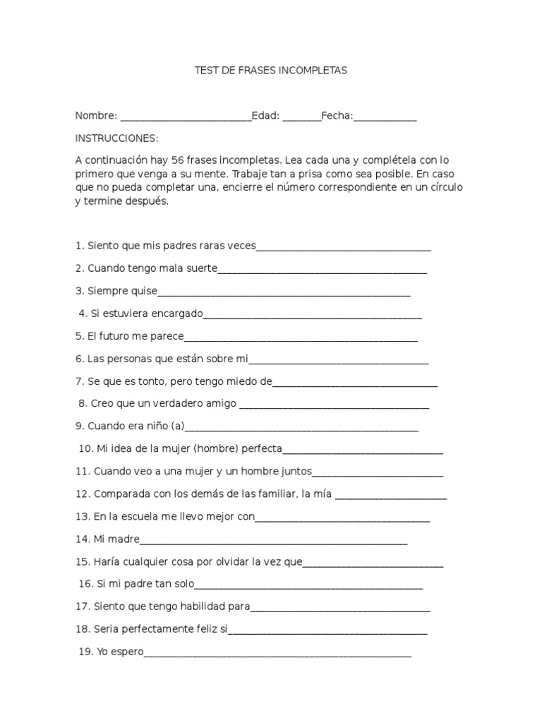 A continuacin hay 56 frases incompletas. Lea cada una y compltela con lo