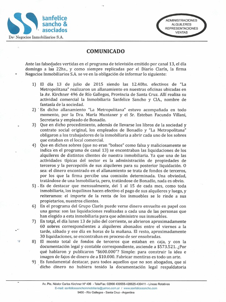 Metropolitana” realizaron un allanamiento en nuestras oficinas ubicadas en