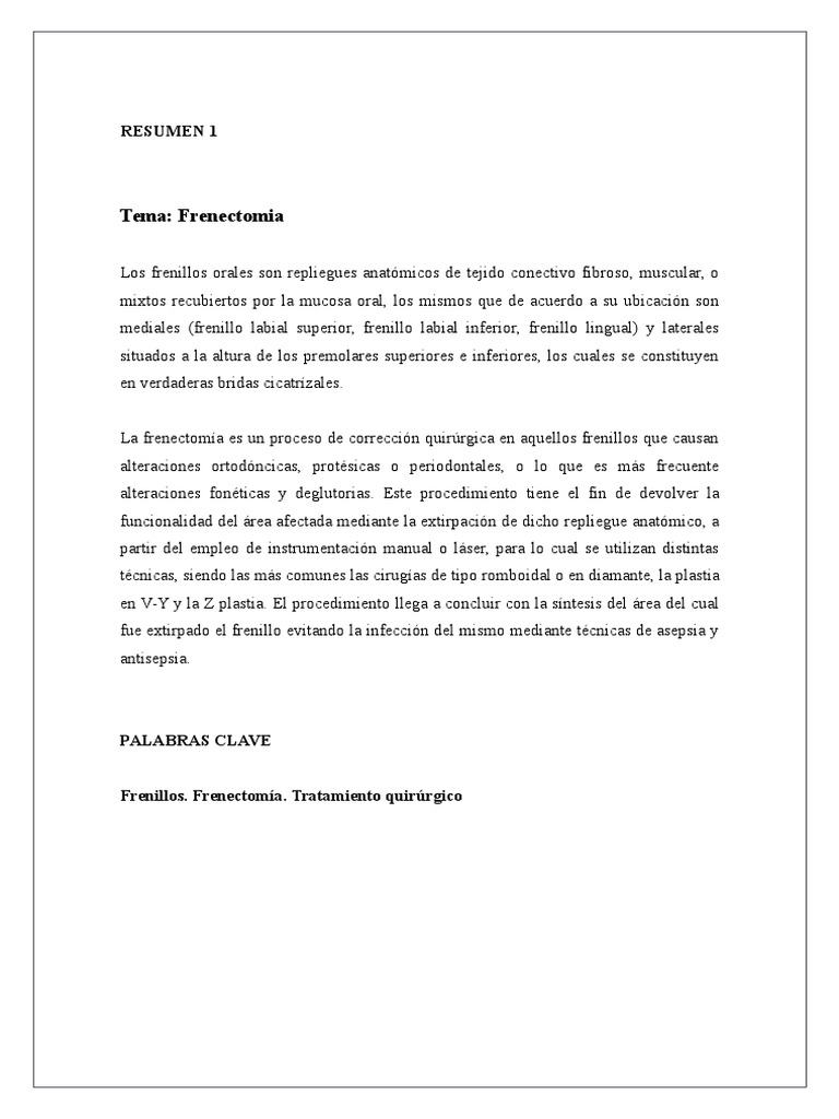 En cuanto nos compete a frenectoma la tcnica mas adecuada es la Z-plastia es la