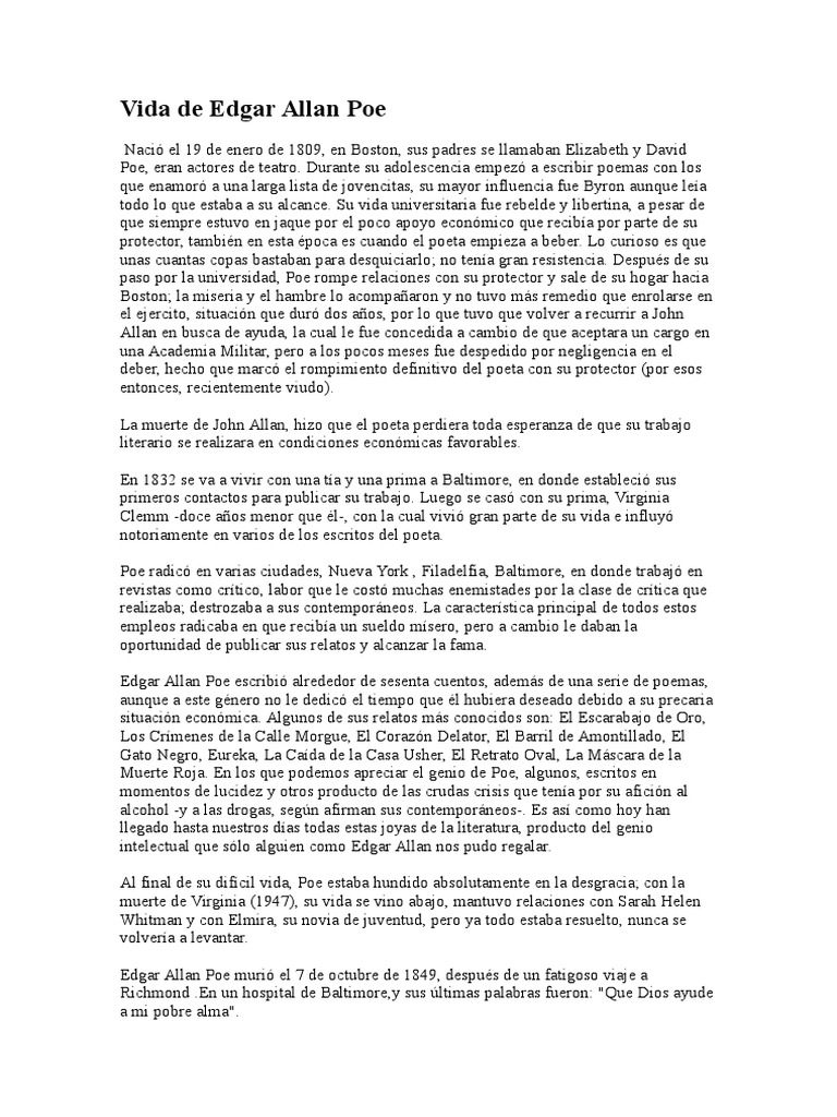 Poe quiso ser poeta, pero la necesidad econmica le oblig a abordar el relativamente