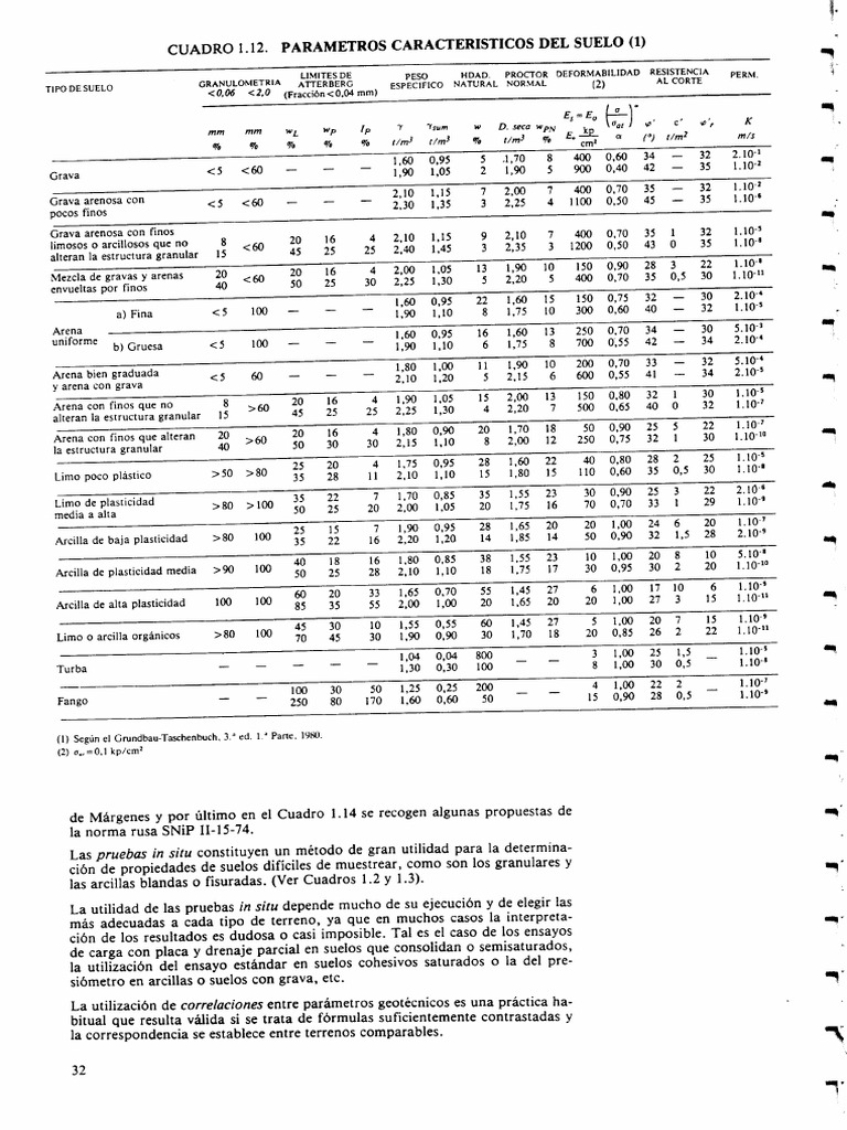 CUADRO 1.12. PARAMETROS CARACTERISTICOS DEL SUELO (1)
