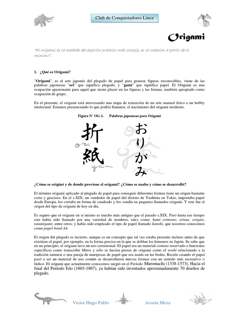 ldico. El origami que actualmente conocemos surgi en el Perodo Muromachi (1338-1573). Hacia el