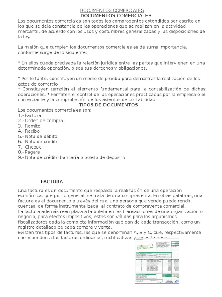 Los documentos comerciales son:
