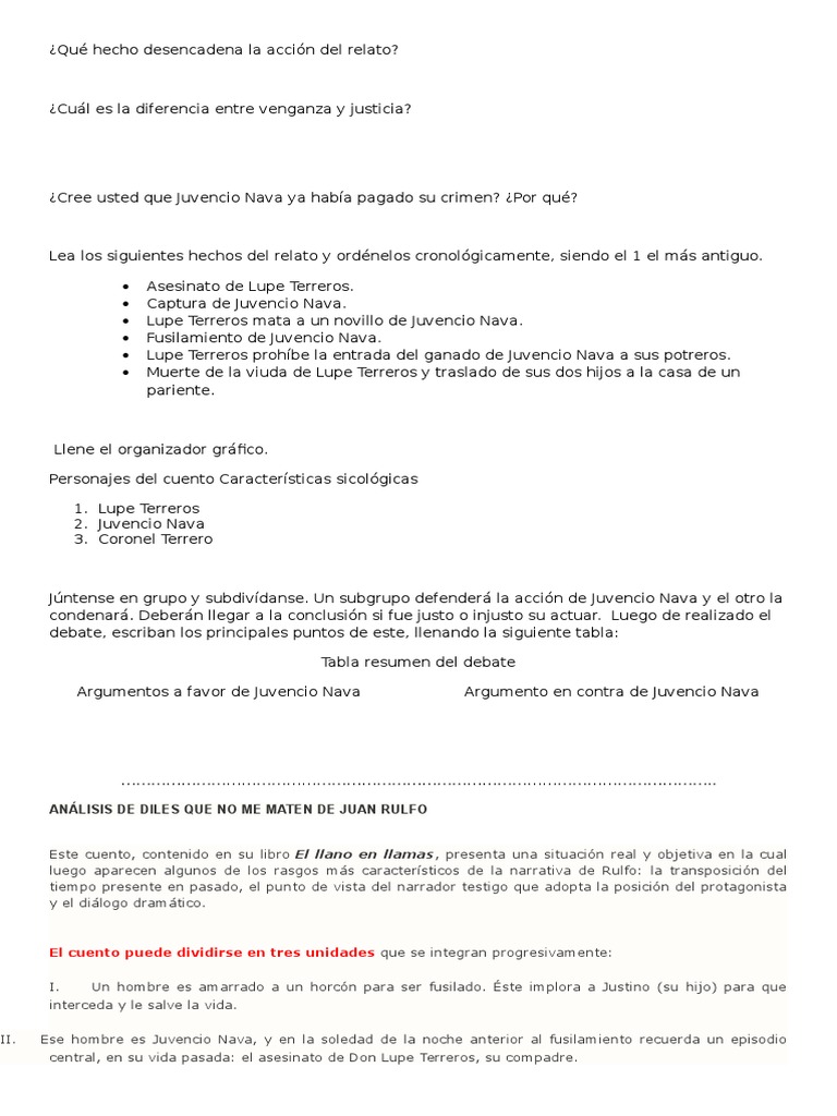 ANLISIS DE DILES QUE NO ME MATEN DE JUAN RULFO
