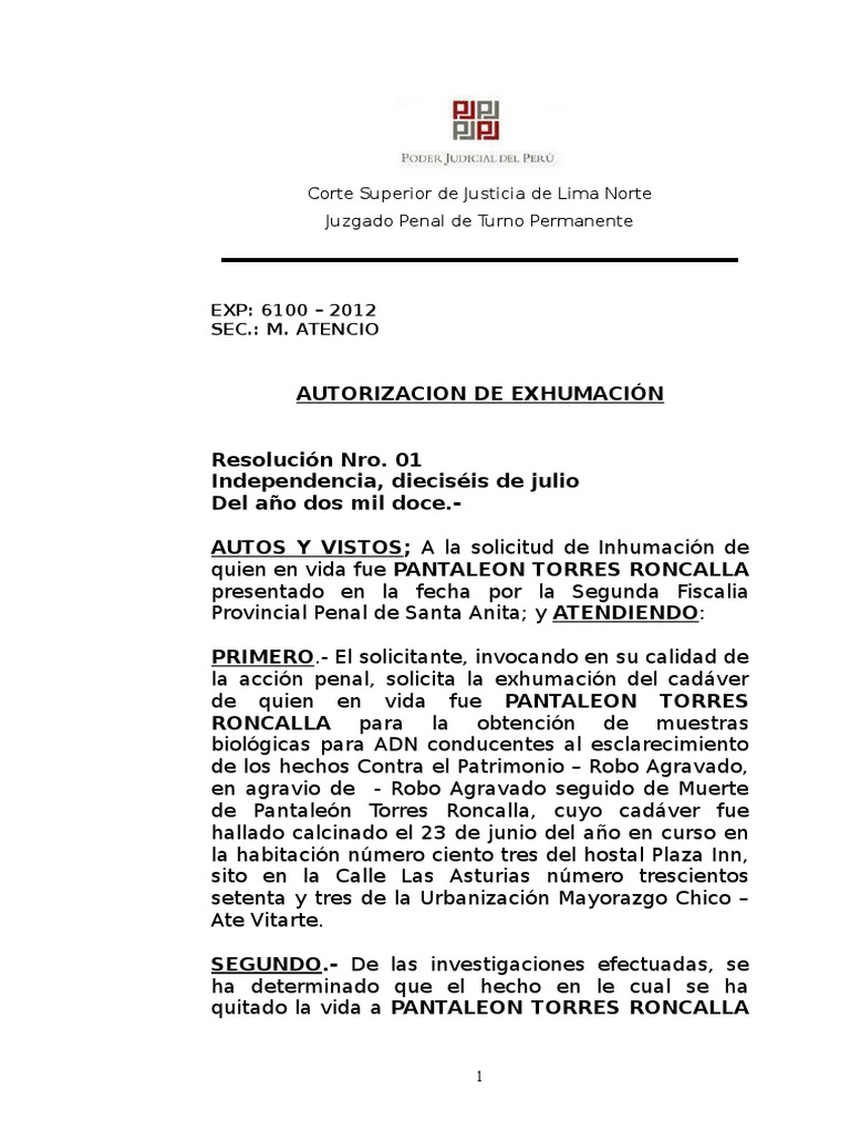 de Pantalen Torres Roncalla, cuyo cadver fue